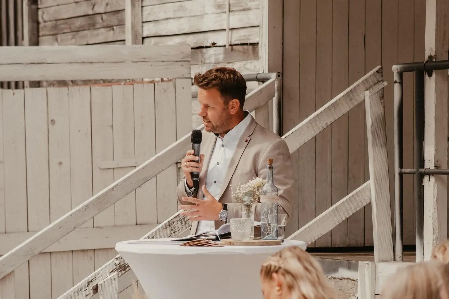 Meine langjährige Erfahrung als Moderator und Redner hilft mir, eure Trauzeremonie einzigartig zu gestalten. Dazu gehören Perfektion, Empathie und das Gefühl dafür, wie man Menschen in einem Moment fesselt und im nächsten zum Lachen bringt.